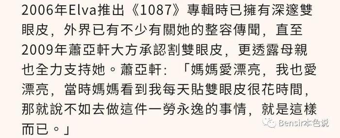2009年,她终于公开回应在妈妈支持下割了双眼皮: