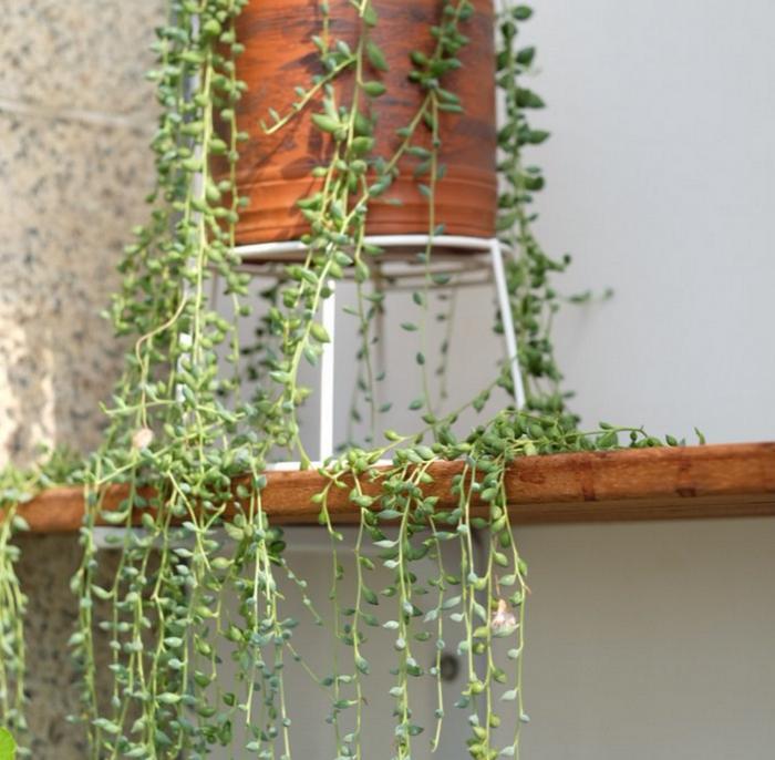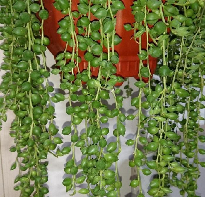 情人泪的长相比较奇特,就像它的名字所描述的,它像是一串串泪珠挂在枝条上,水滴状的叶子仿佛不知道什么时候什么时候就会离开枝条,坠落到地面上。因此养情人泪的时候更适合把它吊在半空中,这样一来它的叶子就能自然地垂下来了,像是一面珠帘,也像是一片绿色的瀑布。
