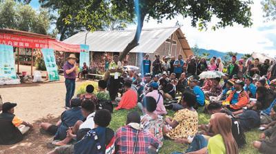 中国援巴布亚新几内亚菌草旱稻项目专家组成员(戴草帽者)在巴布亚新几内亚东高地省中国援助巴新菌草和旱稻技术项目第9期培训班上授课。 (新华社发)