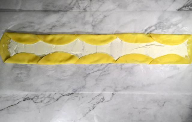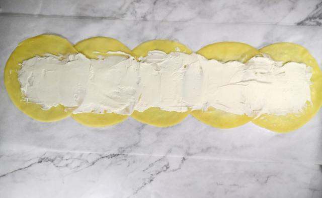 14、在中间的部位涂抹上淡奶油,边缘2cm不涂抹。
