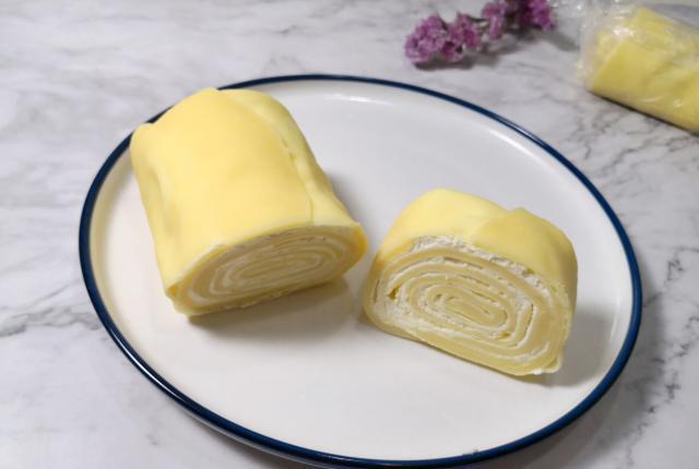 6、【每次煎制面皮时都要搅拌面糊的作用】密度大的面粉容易沉底,搅拌可以让面糊获得均匀的密度,煎出来的千层皮也厚薄均匀。Bingo,这款风靡甜品界的“原味毛巾卷蛋糕”就做好了,伙伴们get到了吗?欢迎喜欢的伙伴们拔草制作,在评论区分享你的美食心得,晒出你的美味作品!