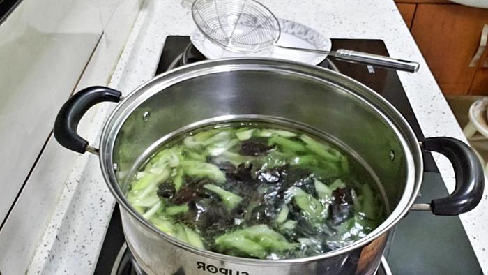 芹菜、木耳焯水中
