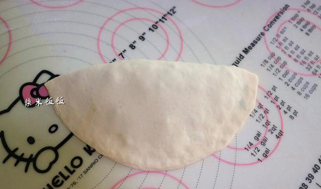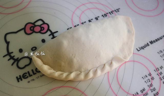 8,把没有馅料的一边对折过来,然后把边缘压合在一起。