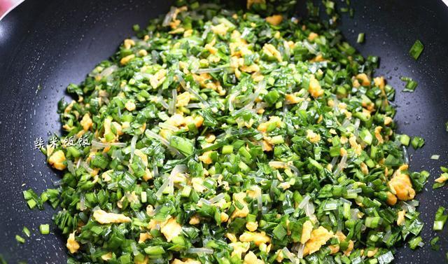 春天的韭菜特别嫩,做馅料很容易出水,但是加入粉条可以吸收韭菜里的水分,这样馅料就完全不会出汤了,粉条也更爽滑。