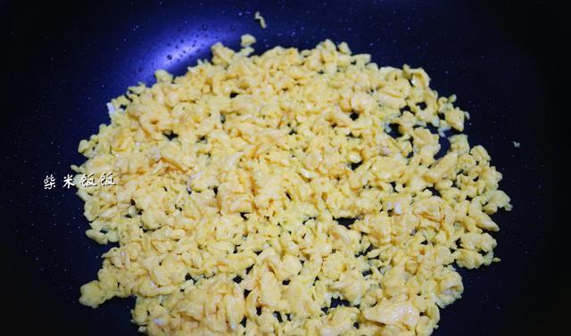 3,开始调馅。鸡蛋打入碗中充分搅散,炒锅中加适量油烧热,然后把鸡蛋液倒入锅中,用筷子快速搅拌,把鸡蛋炒熟炒散,放置一边冷凉。