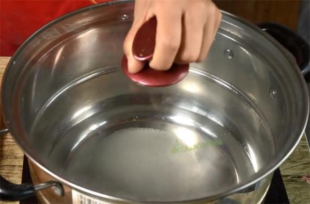 2.首先我们在锅里加入380g清水、30g白糖,开大火烧开。