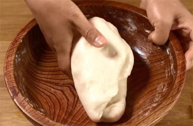 7.下面开始揉面,因为烫面比较粘手所以在我们操作之前先在手上抹上一层油,然后再揉成表面光滑的面团。
