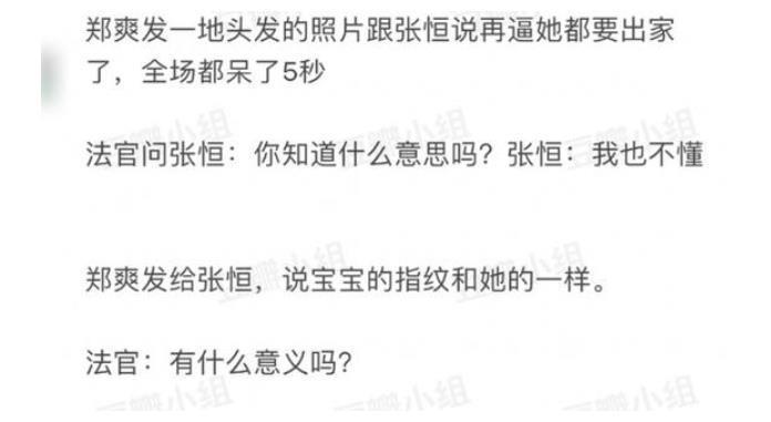 但在网上曝光的庭审内容中,我们了解到郑爽出席庭审的情况确实不是很好。首先,面对法官提出的照顾孩子的问题,张恒心安理得,他也把照顾孩子的细节讲得非常清楚。
