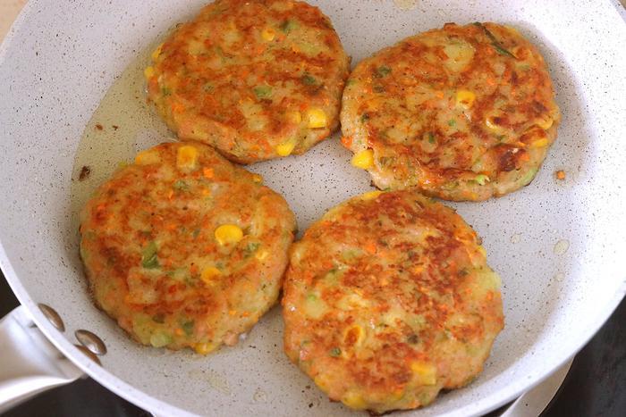 往锅中倒入适量的食用油,大火烧热后,放入土豆饼,待到其两面煎炸至金黄后,就可以关火出锅了。