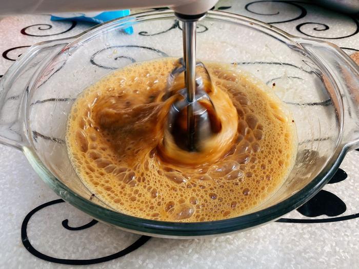 低速打 蛋液与红糖充分接触