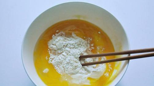 之后我们再准备适量的低筋面粉,而且在放面粉的时候,我们也要提前把面粉过筛,并且要少量多次的放入每一次放都要充分的搅拌均匀,这样才不容易出现面疙瘩的情况。