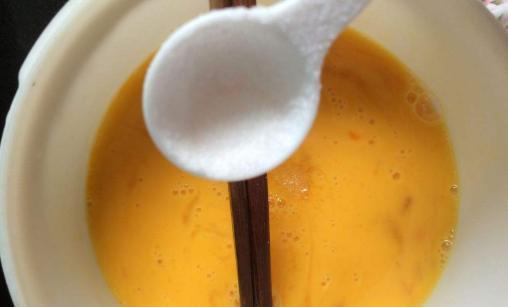 制作方法:首先我们先准备大约5个鸡蛋,然后把准备好的鸡蛋打入一个大碗里面之后再加入适量的白砂糖,充分的搅拌均匀,直到白砂糖完全的融化掉。