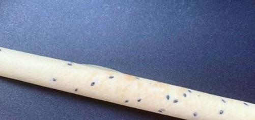 然后我们再准备适量的黑芝麻,一定要注意准备一些熟的黑芝麻。然后把准备好的黑芝麻加入到鸡蛋面糊中,然后再一次充分地搅拌均匀,等到搅拌均匀以后,就可以准备一口平底锅来制作鸡蛋卷了。