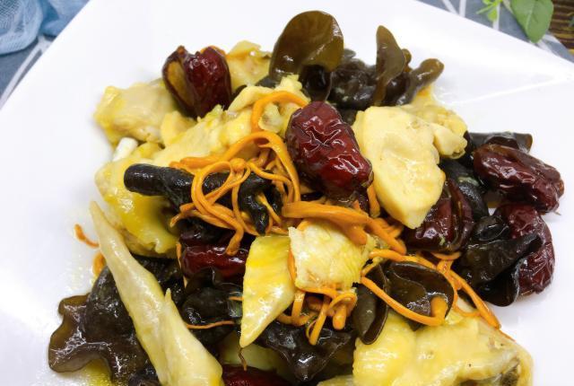 现在市场的鸡肉价钱比较便宜,15元一斤鸡翅膀,买了一对,肉嫩皮黄很新鲜。用鸡做一道家常菜比牛肉猪肉都划算,味道营养一点也不差。虫草花相对便宜,能滋养身体,口感爽滑,香味独特,很适合用来煲汤或清蒸,味道非常鲜。木耳营养丰富,含有大量碳水化合物,蛋白质和其他人体所需的各种元素等,常用来做凉菜,蒸菜,炒菜等。