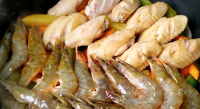 这样做出来的三汁焖锅鸡翅肉质滑嫩入味,土豆胡萝卜和红薯充分吸收了料汁,还有大虾原有的鲜香,开胃下饭,越吃越香,比饭店做的还要好吃。