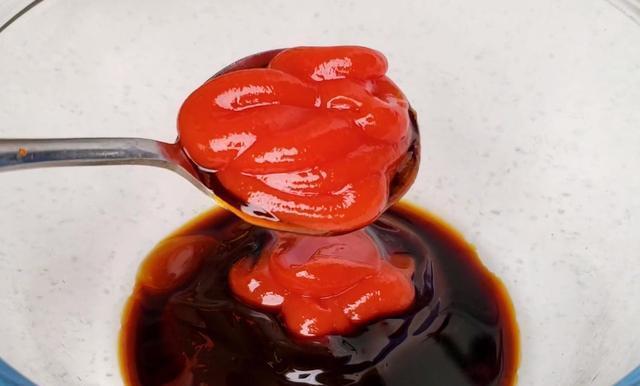 6,调一个酱汁:碗中加入两勺蚝油,两勺生抽,两勺番茄酱,两勺黄豆酱,一点鸡汁,一勺白糖,一勺甜面酱,少许淀粉,少许胡椒粉搅拌均匀。