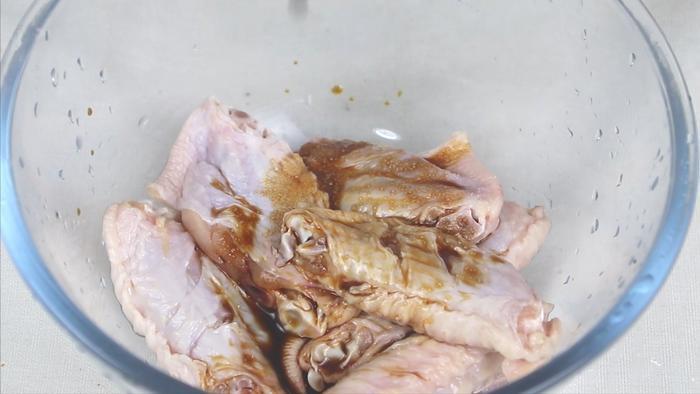 准备适量的鸡中翅,大家可以根据自己的食量来准备,然后在鸡中翅上划开几个刀花,方便鸡翅后面入味。鸡翅切好之后,放在一个大碗里,加入适量的食盐和生抽,少量的老抽,适量胡椒粉和辣椒粉,适量的料酒。手上戴个手套,把鸡翅抓拌,一会儿给鸡翅做个按摩可以让鸡翅更好地入味,抓拌好之后再放一旁腌制十分钟。