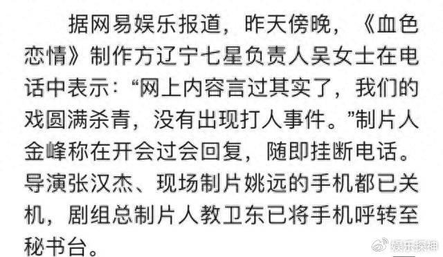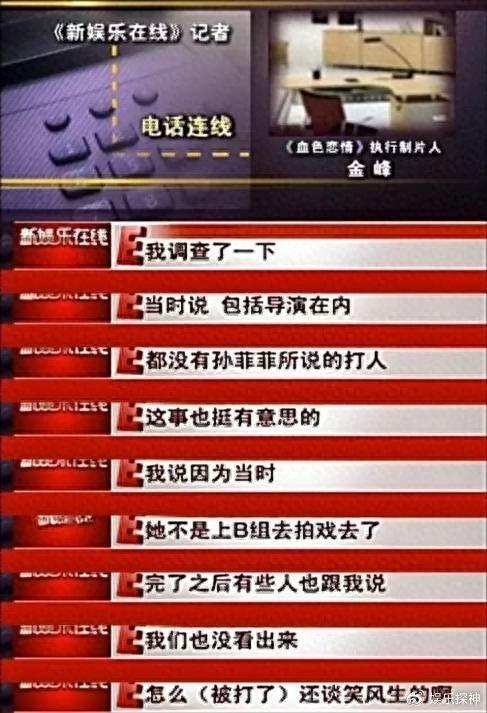 执行制片人接受电话采访时说孙菲菲当天还谈笑风生呢,根本看不出来被打过的样子,剧组从上至下都不知道有打人这回事。