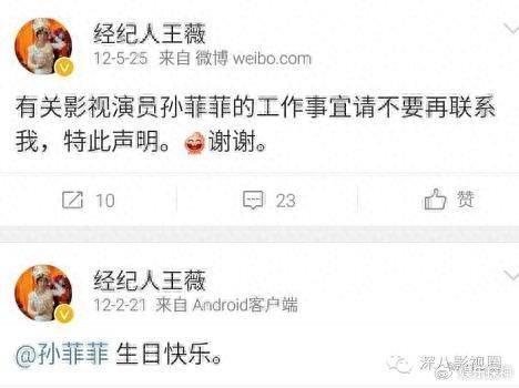 就在插刀半年前,王薇还在微博为孙菲菲庆生,5月份宣布解约时一片风平浪静。