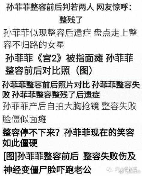 这几年,孙菲菲但凡出现一概与整容崩坏的字眼紧密相连,