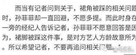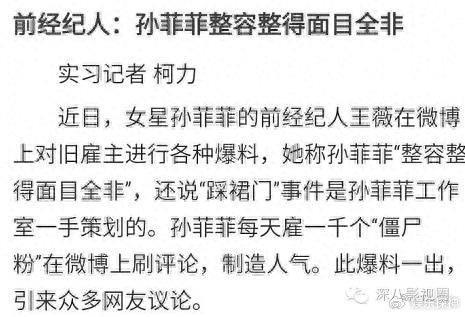至此为止,踩裙门应该算是完美落幕了,可谁也没想到,曾经被孙菲菲视为好姐妹的经纪人王薇会出来插上一刀。