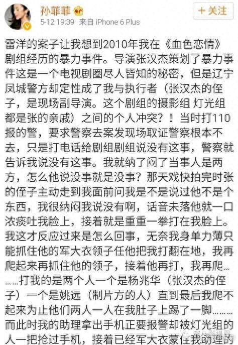 被导演侄子浓痰吐脸,拳打脚踢直到爬不起来为止,孙菲菲描述的画面让人触目惊心,关于剧组打人事件的始末,深八君会在下文详细开八。