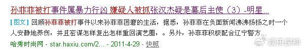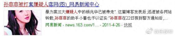 直到11年4月份,涉嫌打人者终于被捉获,才证实了孙菲菲被打确有其事,媒体纷纷称幕后黑手导演张汉杰。
