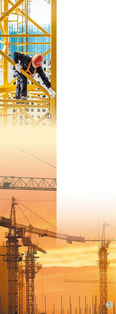 图①为吉克达富在塔吊上作业。油宏琳摄 图②为建设工地上的塔吊。 陆林生摄(影像中国)