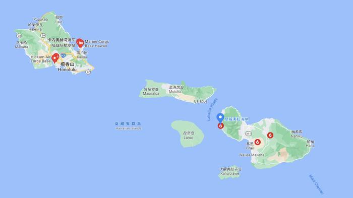 美军基地离拉海纳镇不远(图自谷歌地图)