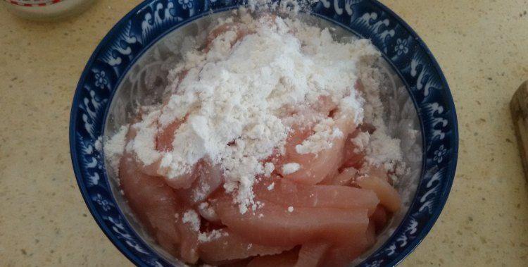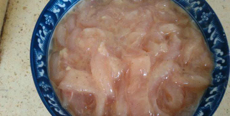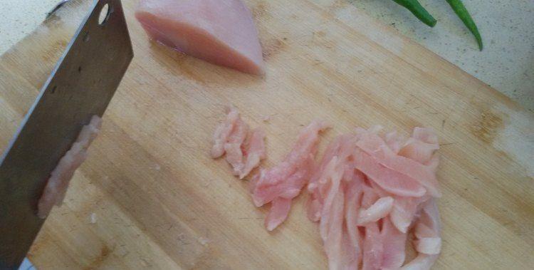 1、准备500克鸡胸肉,洗净后切条