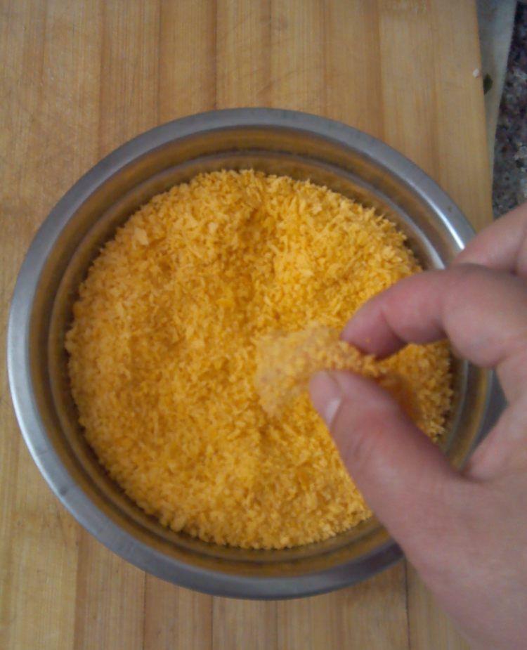 把腌好的鸡柳放入面包糠中,裹均匀。