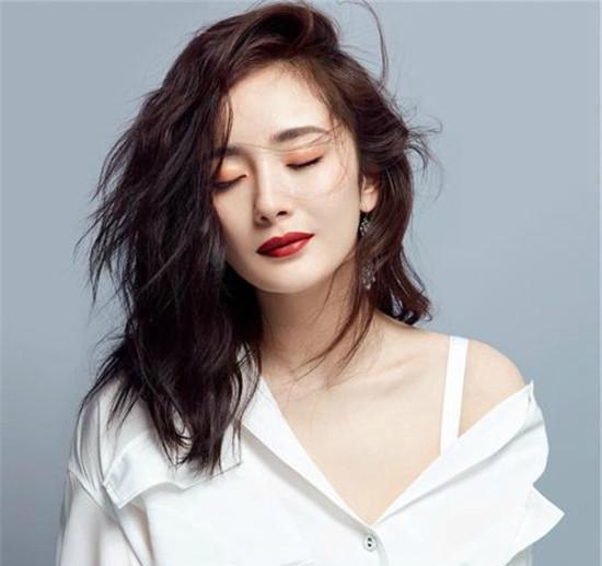 杨幂:白衬衣露半肩性感十足,搭配红唇女人味尽显。