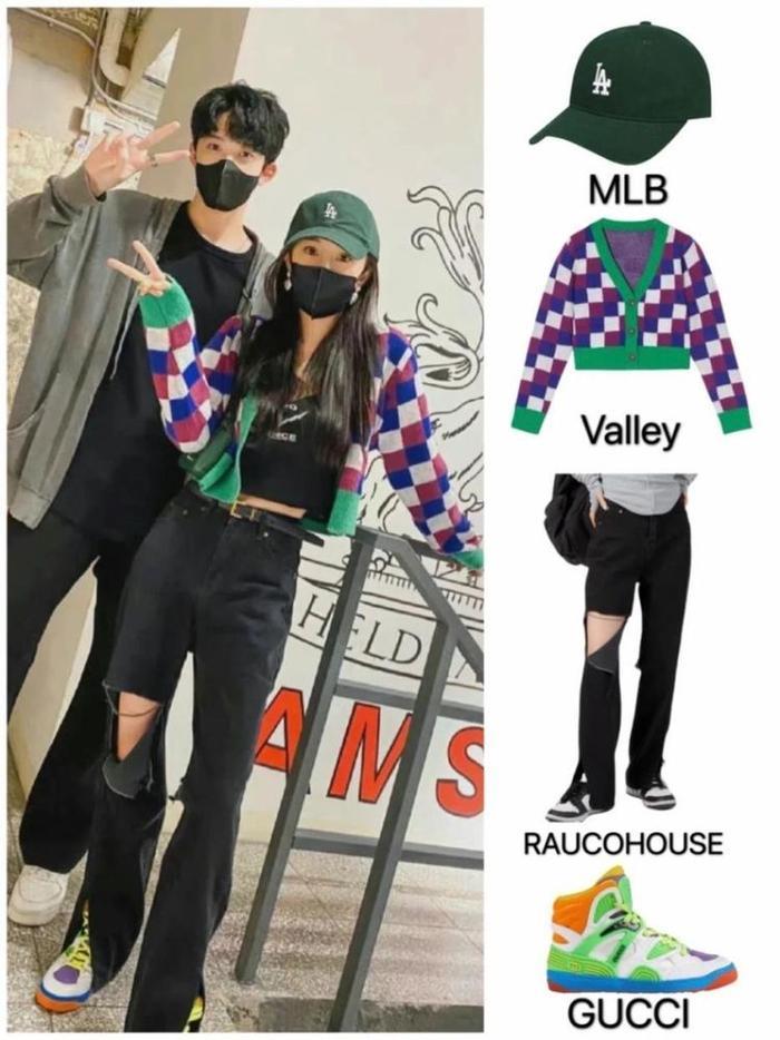 菱形拼接短款针织衫+黑色破洞裤+运动鞋
