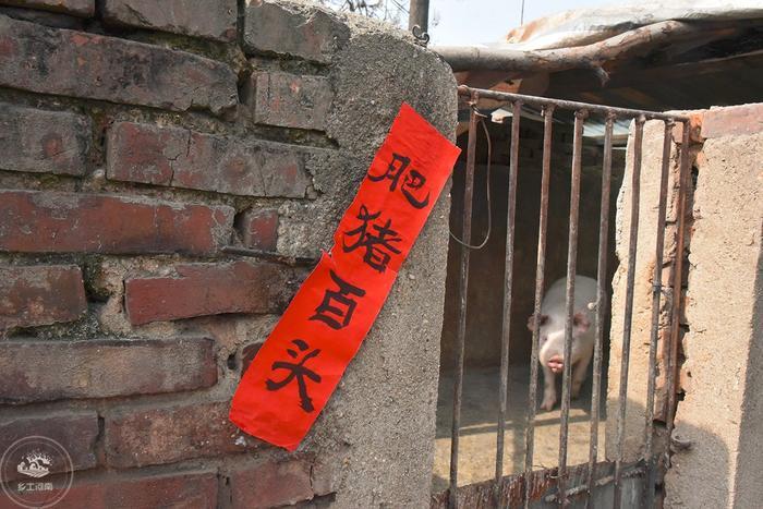还有猪圈上这个“肥猪百头”,语句朴素简单、略有夸张,寄托了主人对明年家畜兴旺的美好期待,往往养牛的人家还会贴上“槽头兴旺”之类的四字对联。