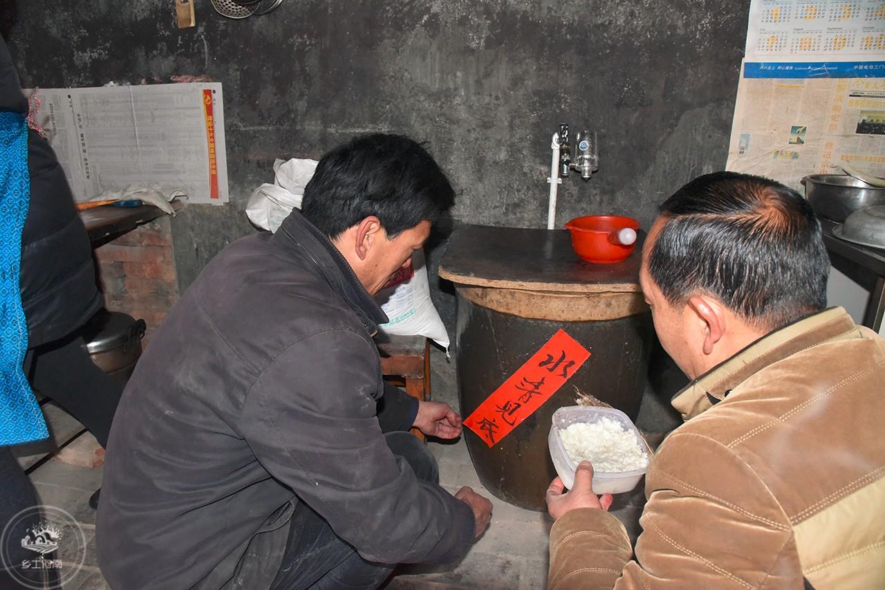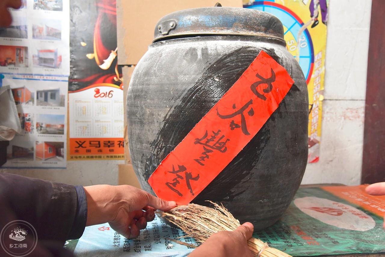 刚才的水缸上贴了“水清见底”,这边的粮罐上贴的是“五谷丰登”,还有“小心灯火”等四字对联都是厨房里贴的。