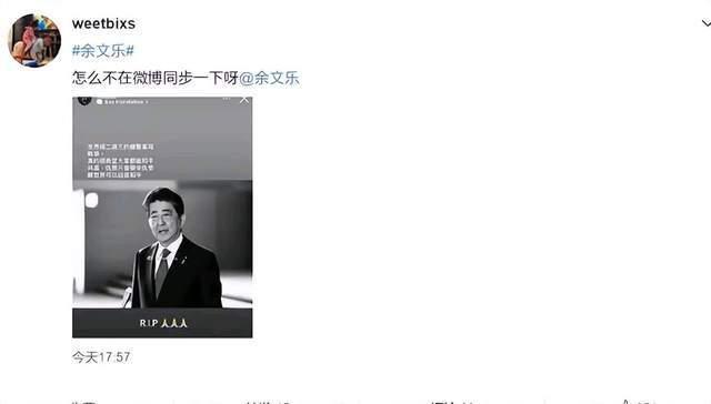 当时有几个人都公开悼念,比如说吕丽萍还有余文乐,不过吕丽萍所发的那一句话,本身就不是安倍晋三说的,就是她张冠李戴,所以就导致她直接被禁言了,而陶晶莹却没有被禁言。