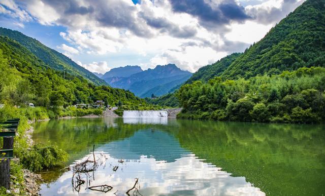 官鹅沟最美的湖泊随处可见,尤如一串绿色的珍珠镶嵌在沟内,湖水也是清澈透底,随湖底地貌高低呈不同颜色。