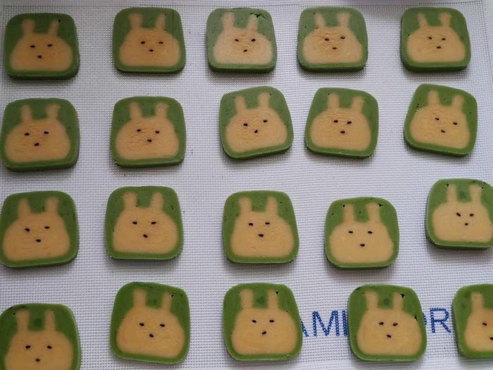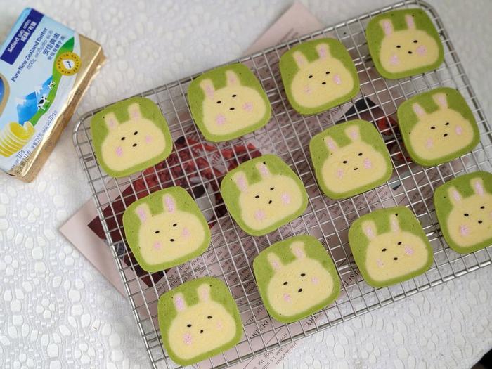 自制抹茶口味的曲奇,里面的小兔子,造型简直太可爱了