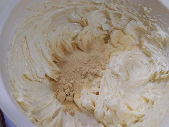 1、称好我们事先准备好的食材,将黄油软化,软化后,在黄油中加入糖粉,再将黄油和糖粉搅拌均匀,成糊状即可。搅拌均匀后加入事先准备好的鸡蛋,打入鸡蛋后再次进行搅拌,还是要搅拌均匀。