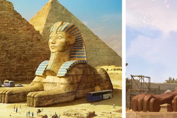 狮身人面像和金字塔一样闻名世界,位于埃及吉萨金字塔墓区的埃及文化遗产。目前关于是谁建造的有两个说法,而这个虽然还在原位,但这个高20.22米,长72.55米的斯芬克斯狮身人面像却在历史发展的过程中不论是受到自然还是认为因素破坏,已经失去了原本的面貌,目前仅能通过还原的手法想象它原本的模样。