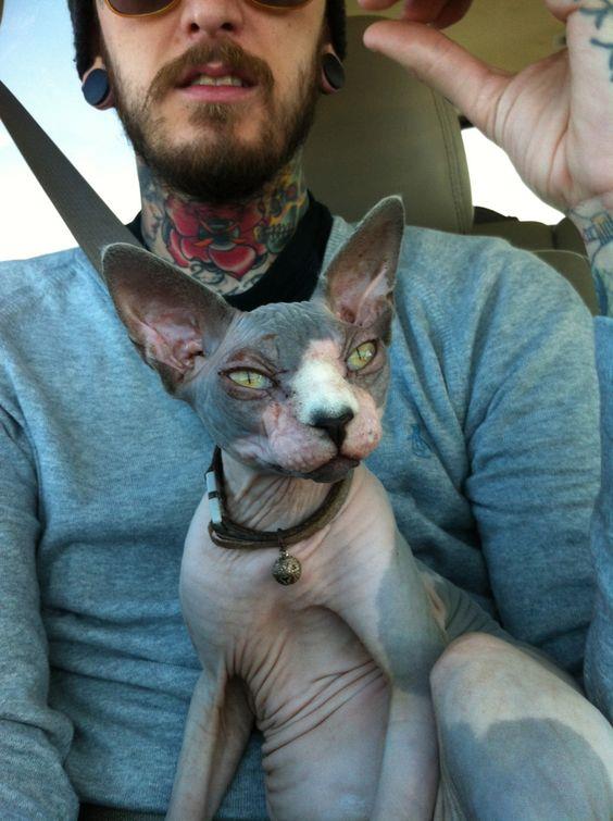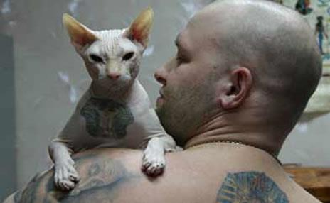 纹身之后的斯芬克斯猫更有一种黑帮的既视感。但事实上这种猫性情温顺,独立性强,无攻击性。