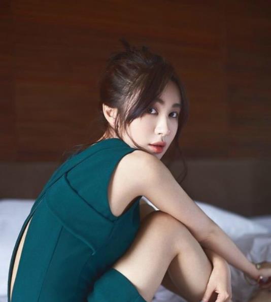 身穿墨绿色裙子的李菲儿四肢纤细,肤白貌美,真是太好看了