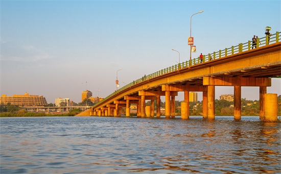 中国援建的尼亚美二桥横亘在尼日尔河面上