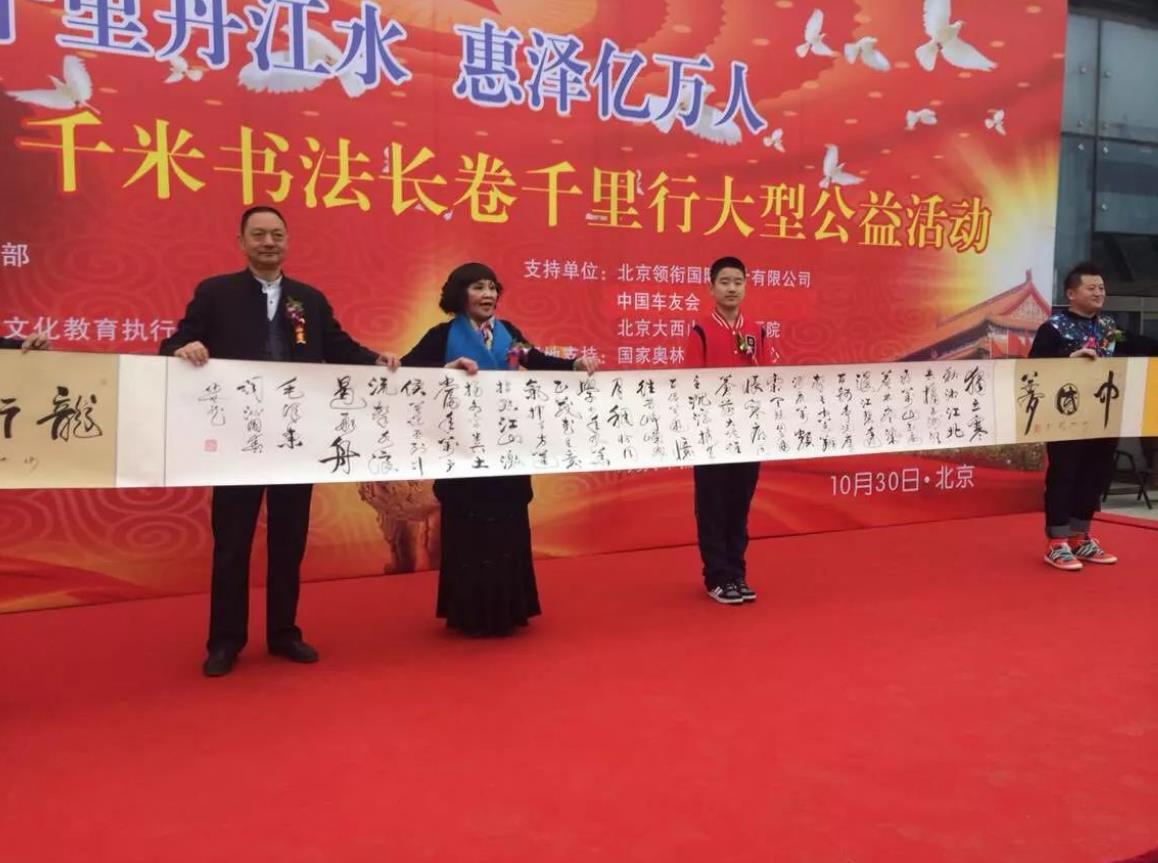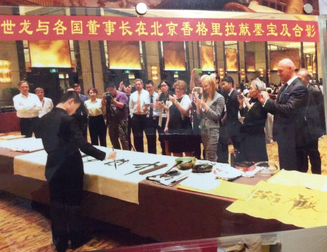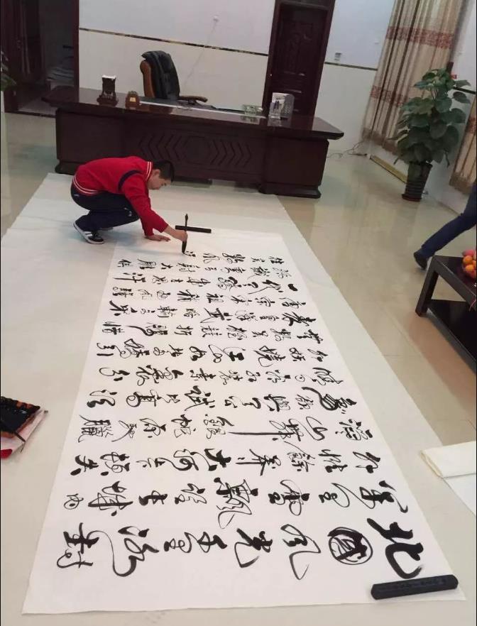 何丰顺一听有这个机会,马上给儿子报了名。于是乎,在人大会议中心门口出现了一张方桌,何世龙就在这里创作书法作品。