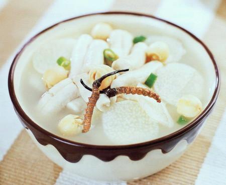 5、冬虫草、冬虫草一向具有补肺、补肾和护肝养肝的功效,主治由肺肾两虚引起的咳嗽气促。现代医学更发现其具有平衡荷尔蒙和提高免疫力的作用,补益效用相当多,最适合肝肾阴虚人士食用。