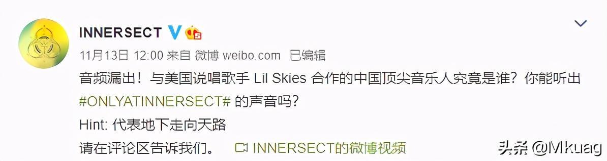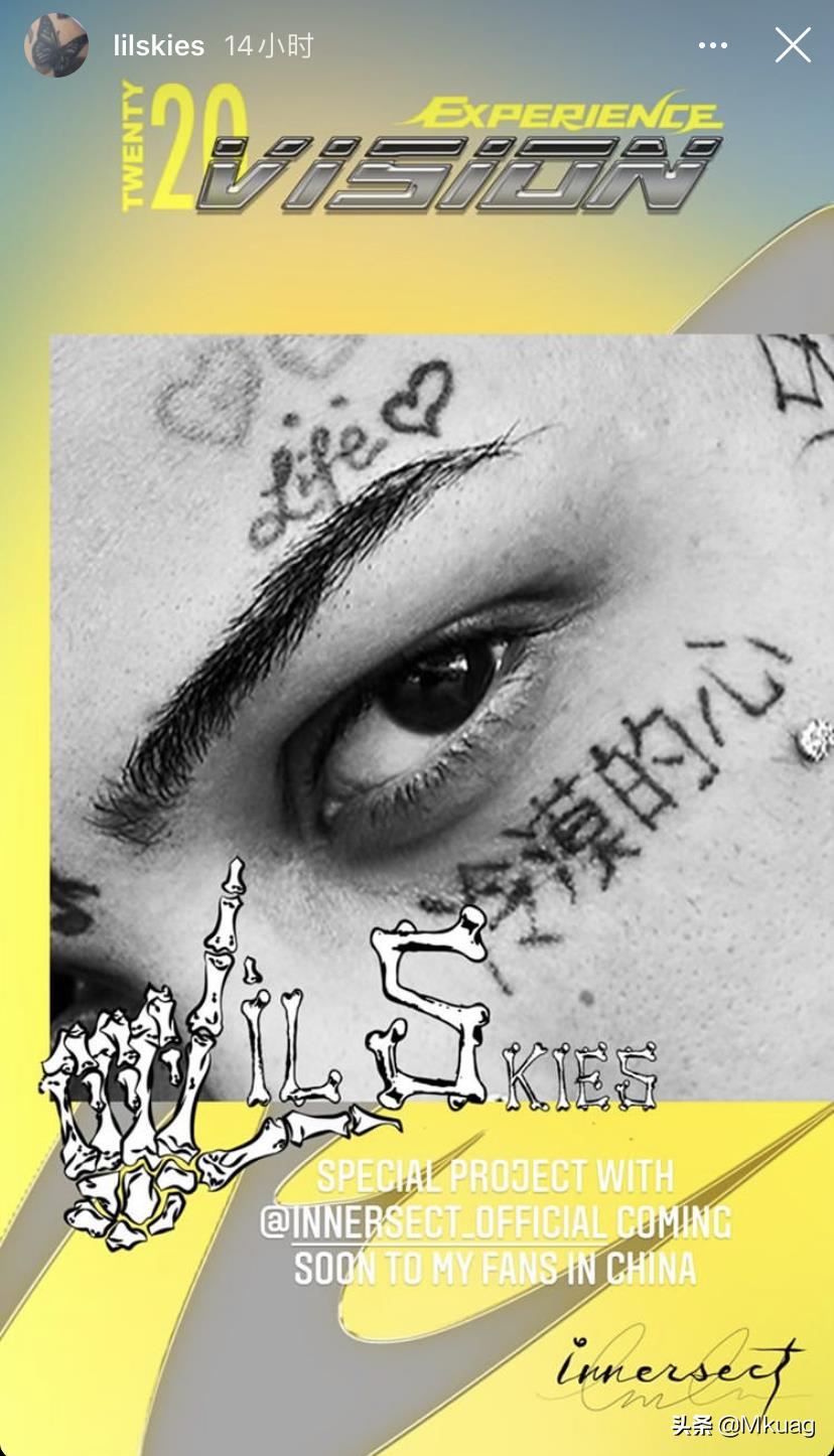 北京时间11月13日早上 6:00 左右,Lil Skies 于 Instagram Story 发布了一则贴文,预告了自己和 INNERSECT 合作的消息。