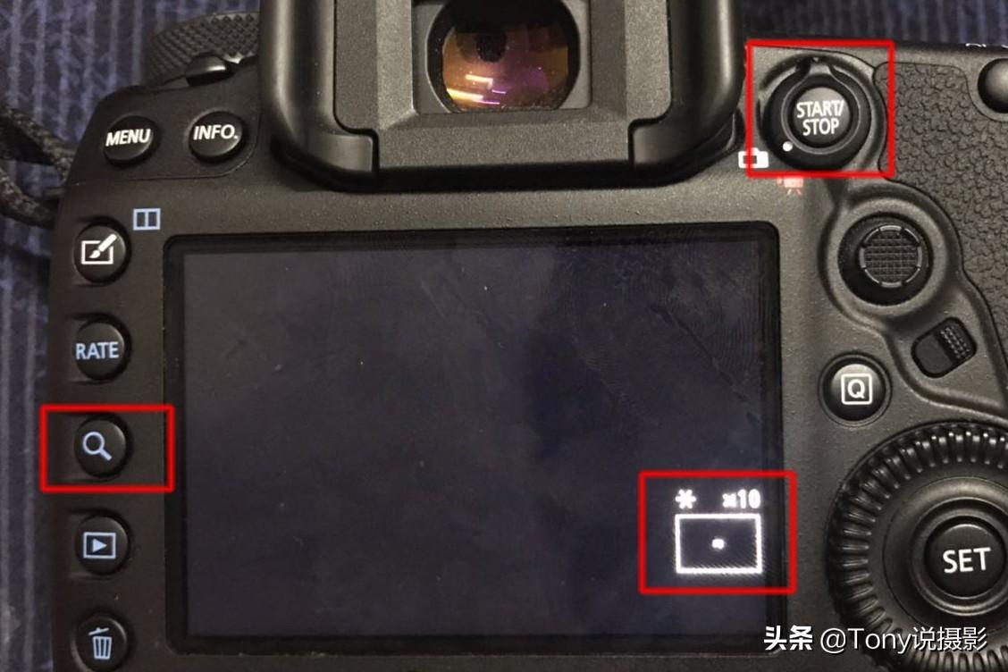 ④拍摄星空的难点是对焦,当我们做完基本工作后,要进行预对焦。选择手动曝光模式M档和手动对焦MF,开大光圈、增加曝光时间、提高ISO,用液晶屏幕进行实时取景,观察画面效果;再使用放大镜按钮,对拍摄画面进行放大显示,一般最大可放大10倍,通过观察屏幕来手动调整对焦环,实现精准对焦。