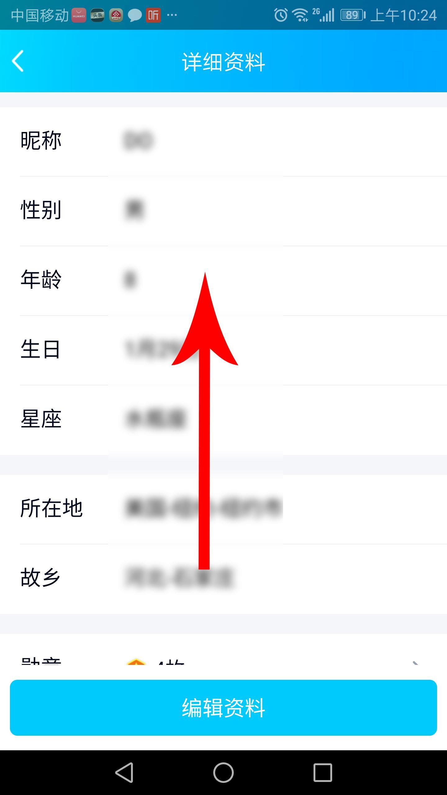 4,打开详细资料界面,向上滑动界面,然后点击“勋章”。