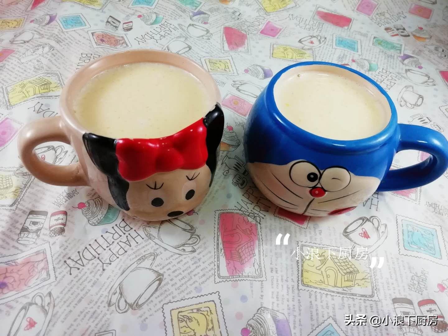 4、将搅拌好的布丁液倒入小杯子中。我的小杯子是不是超级好玩?哈哈哈。将小杯子包裹住保鲜膜或者盖上锡纸,放到蒸锅上蒸。盖上锅盖小火加热7分钟,关火焖5分钟,再度开小火煮5分钟,焖5分钟。