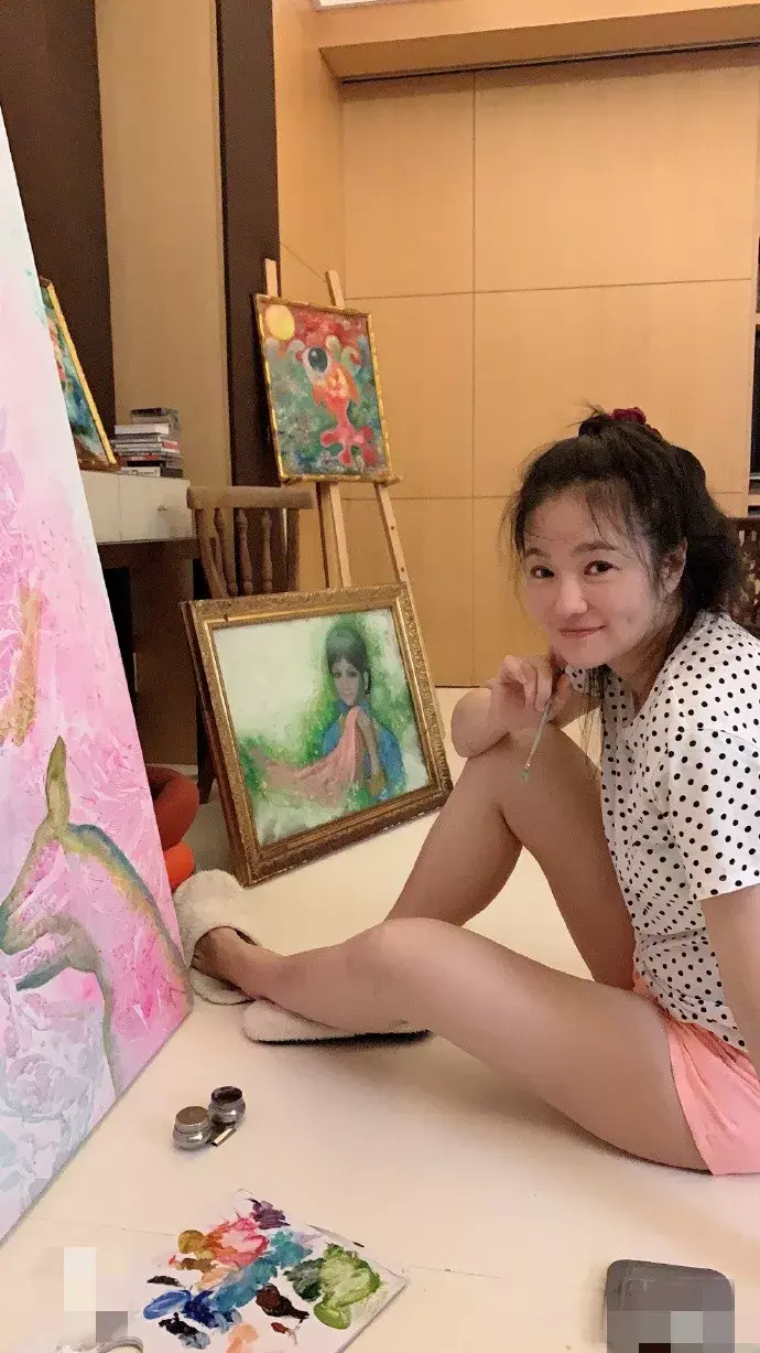 她在个人社交网站上晒出自己作画的照片,皮肤白皙,面容娇嫩,笑起来还有酒窝,如一个活泼少女般清纯可爱,谁能想象到她已经超过50岁了?